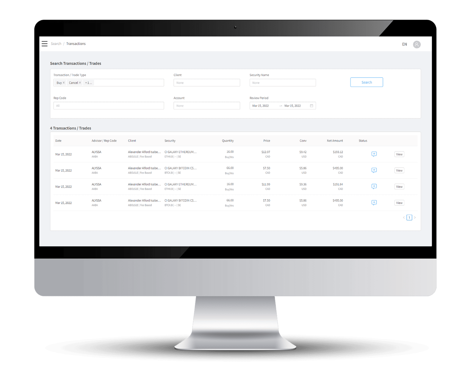 Supervisors receive instant alerts for trades with overdue KYC, and advisors can proactively manage upcoming requirements within 30, 60, and 90 days.